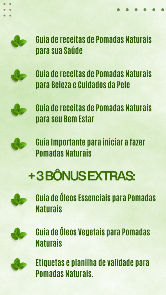 Mesmo sem experiência, aprenda o passo a passo para criar pomadas naturais que já transformaram a vida de mais de 3.200 pessoas, por apenas R$ 19,90.